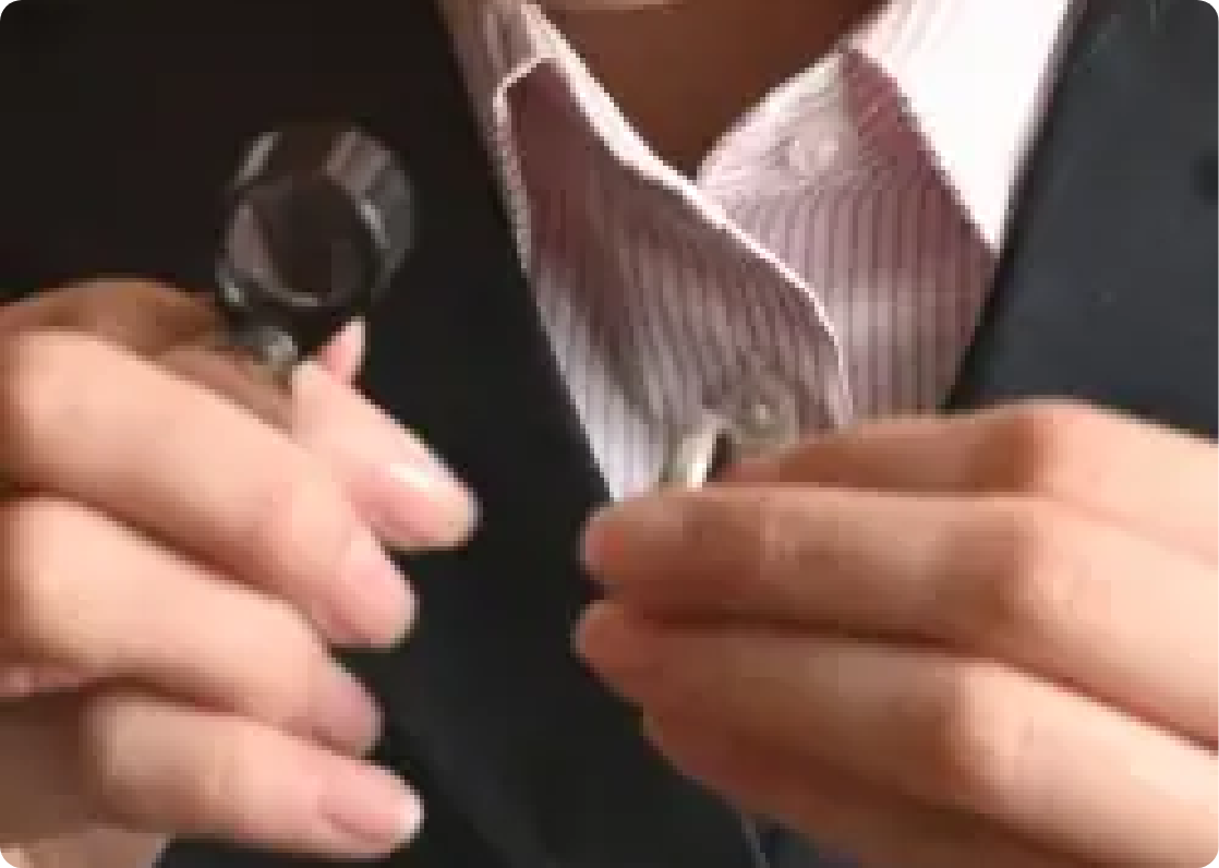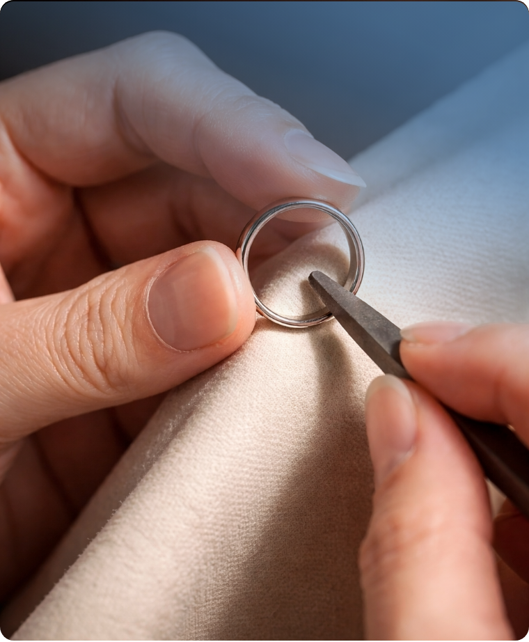 完成した指輪をお渡しします。 サイズや着用感の確認を行い、必要に応じて調整も承ります。