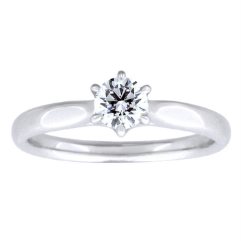 王道のソリティアタイプながらも、6本の爪で支えるシャトンは、二人の手を合わせダイヤモンドを支え合うようにセッティングしてあるのが特徴。アームはかっこよさと着けやすさを兼ね備えた平甲丸。