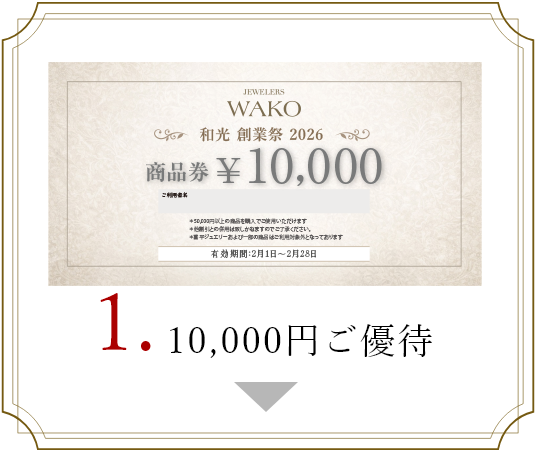 ご購入いただきました商品の合計金額から10,000円ご優待させていただきます。