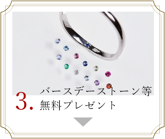 バースデーストーン、つや消し加工、刻印をすべて無料でお入れいたします。