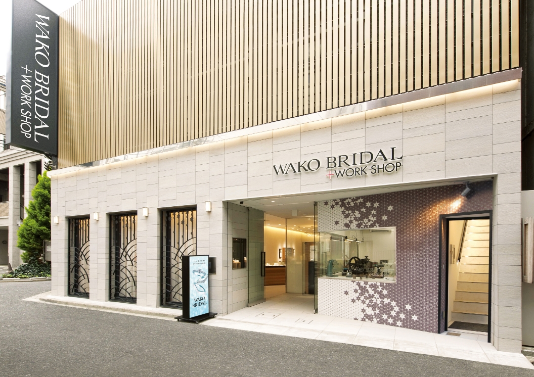 麻の葉模様のタイルで縁取られた、ガラス張りの工房が印象的。WAKO BRIDAL