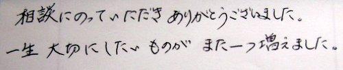 相談にのっていただきありがとうございました。 一生大切にしたいものが、また一つ増えました。