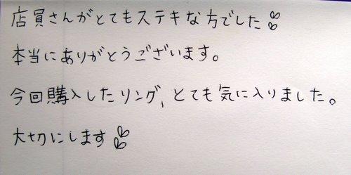 店員さんがとてもステキな方でした♪♪ 本当にありがとうございます。 今回購入したリング、とても気に入りました。 大切にします♪♪