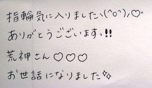 指輪気に入りました\(^o^)/☆ ありがとうございますっ!! 荒神さん☆☆☆ お世話になりました!!