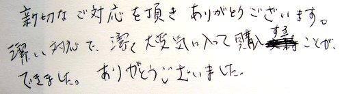 親切なご対応を頂き、ありがとうございます。 潔い対応で、凄く大変気に入って購入することが、 できました。ありがとうございます。