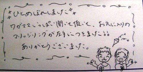ひとめぼれしました☆☆ワガママいっぱい聞いて頂いて、お気に入りのマリッジリングが左手につきました!!ありがとうございました。!(^^)!!(^^)! ※直筆にイラストあり