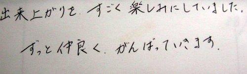 出来上がりをすごく楽しみにしていました。 ずっと仲良く、がんばっていきます。