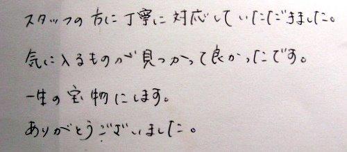 スタッフの方に丁寧に対応していただきました。 気に入るものが見つかって良かったです。 一生の宝物にします。ありがとうございました。