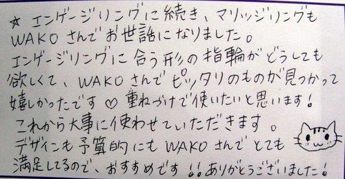 ☆エンゲージリングに続き、マリッジリングもWAKOさんでお世話になりました。