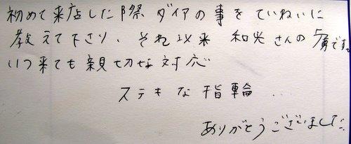 初めて来店した際、ダイヤの事をていねいに教えてくださり、 それ以来 和光さんの虜です。 いつ来ても親切な対応、ステキな指輪ありがとうございました。