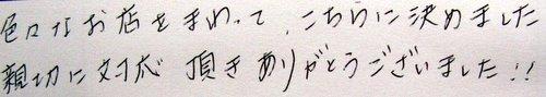 色々なお店をまわって、こちらに決めました。 親切に対応して頂きありがとうございました!!