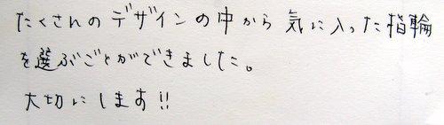 たくさんのデザインの中から 気に入った指輪を選ぶことができました。 大切にします!!