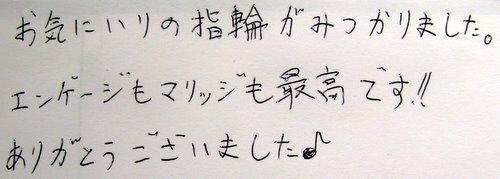 お気にいりの指輪がみつかりました。 エンゲージもマリッジも最高です!! ありがとうございました♪