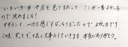 いろいろ本や店を見てまわって、ここが一番よかったので決めました! デザインも、つけた感じもばっちりだったので、よかったです。 この先、ずっとずっと長く大事にしていきます。本当にありがとう。