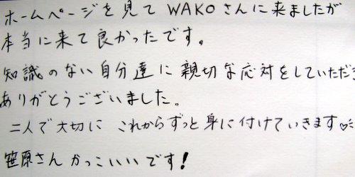 ホームページを見てWAKOさんに来ましたが本当に 良かったです。知識のない自分達に親切な対応をしていただきありがとうございました。 二人で大切にこれからずっと身に付けていきます? 笹原さんかっこいいです!