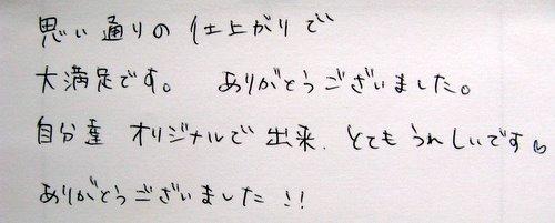 思い通りの仕上がりで大満足です。 ありがとうございました。自分達オリジナルで出来、 とてもうれしいです?ありがとうございました!