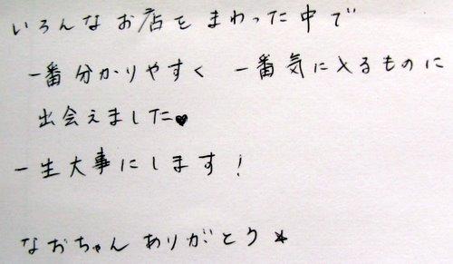 いろんなお店をまわった中で一番わかりやすく 一番気に入るものに出会えました? 一生大事にします!なおちゃんありがとう☆