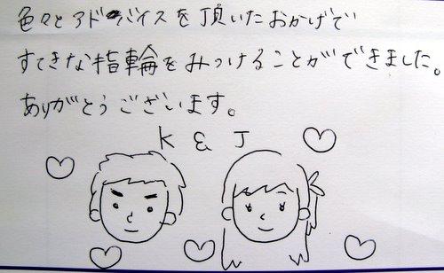 色々とアドバイスを頂いたおかげですてきな指輪をみつけることができました。ありがとうございます。K&J ※イラスト付き(*^_^*)(*^_^*)