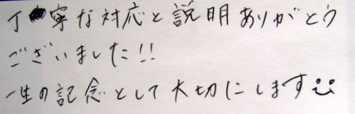 丁寧な対応と説明ありがとうございました!! 一生の記念として大切にします(*^_^*)