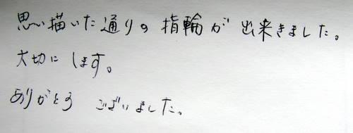 思い描いた通りの指輪が出来ました。 大切にします。ありがとうございました。