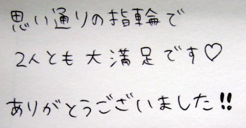 思い通りの指輪で2人とも大満足です? ありがとうございました!!