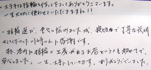 ・ステキな指輪を作って下さってありがとう ございます。一生大切に使わせていただきますね!!