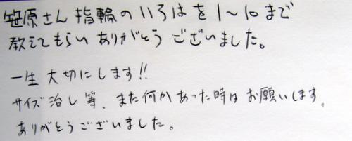 笹原さん指輪のいろはを1~10まで 教えてもらいありがとうございました。
