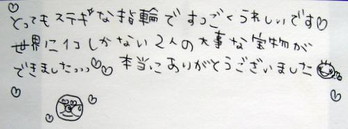 とってもステキな☆彡指輪ですっごく うれしいです?世界に1コしかない2人の 大事な宝物ができましたっっっ? 本当にありがとうございました(*^_^*) ※イラストつき