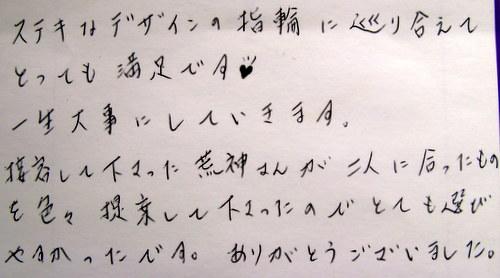 接客して下さった荒神さんが二人に合ったものを 色々提案して下さったので とても選びやすかったです。ありがとうございました。