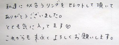 私達に似合うリングをセレクトして頂いて ありがとうございました。 とても気に入ってます? これからも末永くよろしくお願いします。