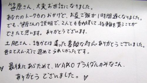 土肥さん、誰かとは違った素敵な対応ありがとうございました。色々とスムーズに進めてうれしかったです。