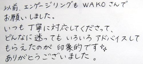 以前、エンゲージリングもWAKOさんで お願いしました。いつも丁寧に対応してくださって、どんなに迷ってもいろいろアドバイスしてもらえたのが印象的です☆☆ ありがとうございました。