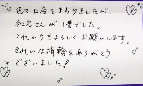 色々お店をまわりましたが、和光さんが1番でした。 これからもよろしくお願いします。 きれいな指輪をありがとうございました!