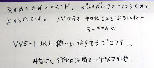 初めてのダイヤモンド、ブライダルワコーに決めてよかったです。次からも和光さんでよろしくねーうーちゃん?