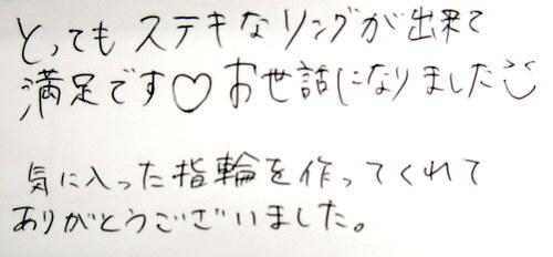 とってもステキなリングが出来て満足です?お世話になりました(´∀`)