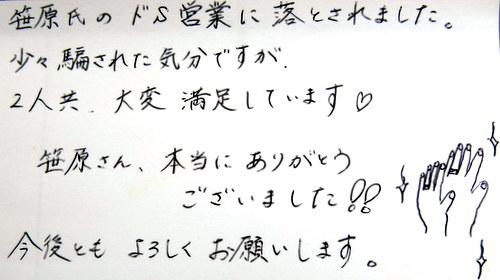 笹原氏のドS営業に落とされました。少々騙された気分ですが、2人共、大変満足しています?